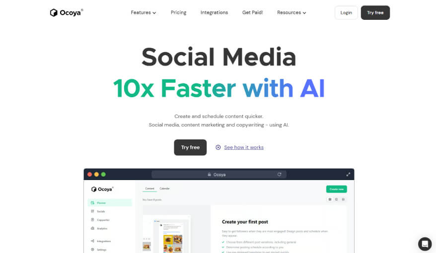 🌐 Ocoya.com: con esta herramienta podrás diseñar imágenes, gifs, música, videos y textos en 26 idiomas. Una vez que hayas creado el contenido, Ocoya lo publicará en tus cuentas sociales cuando le indiques y podrás hacer un seguimiento del rendimiento de tus publicaciones. El precio es de $15 al mes.