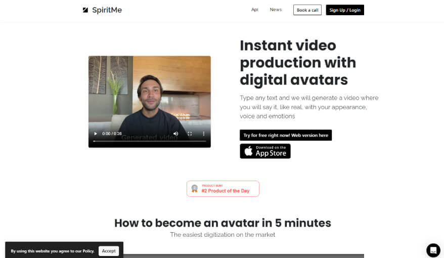 📹 Spiritme.tech: con esta herramienta podrás generar un video donde apareces hablando con tu voz, apariencia y gestos. Esta herramienta es perfecta para formaciones, bloggers y videos personalizados. La versión gratuita viene con un avatar estándar de su biblioteca, pero si deseas un avatar personalizado, el precio es de €79 al mes.